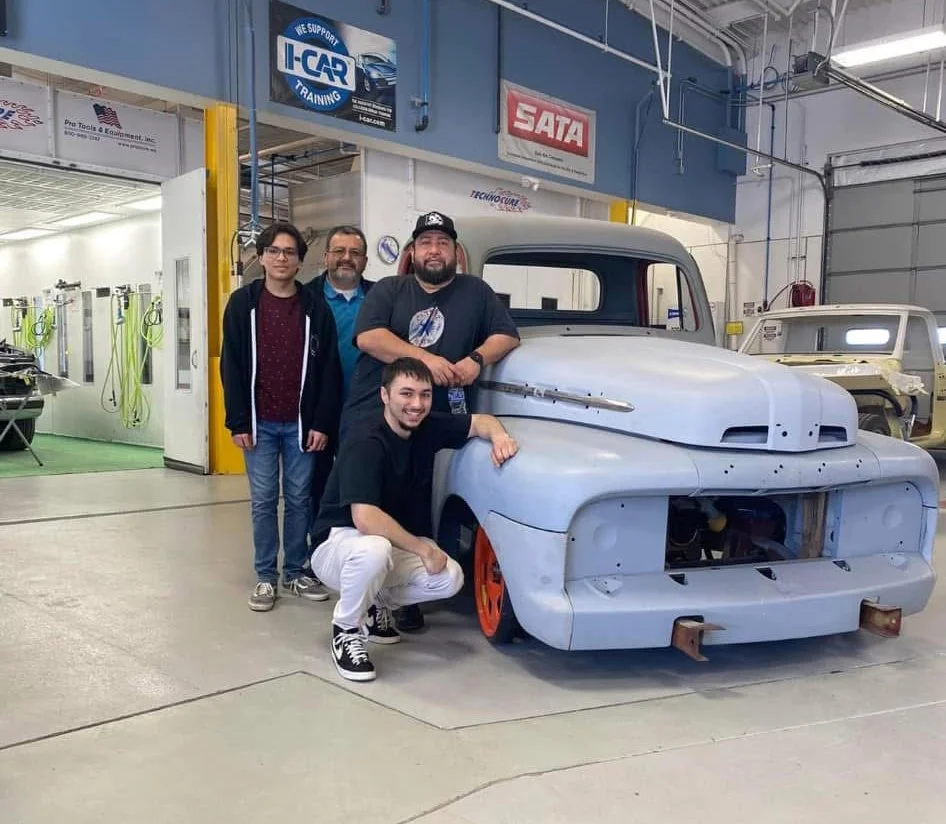 Featuring Fredo’s 1952 Ford pickup truck with pinstripe design